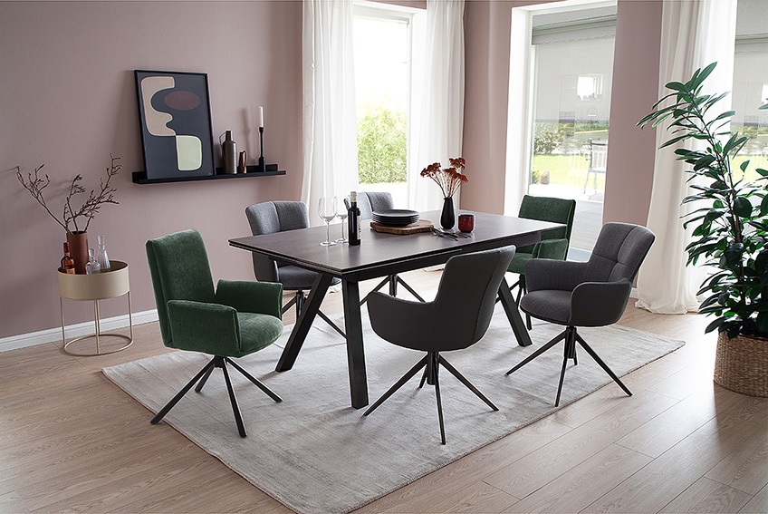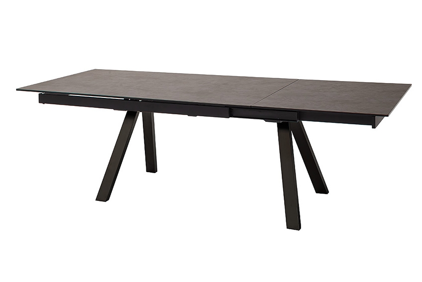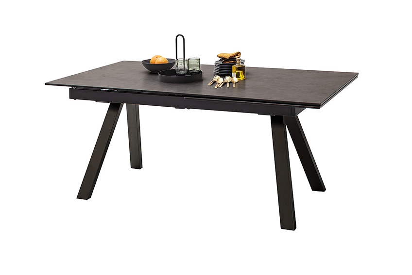 Rūdīta stikla izvelkams galds ar keramikas pārklājumu. Īpaši noturīgs pret karstumu un skrāpējumiem.
